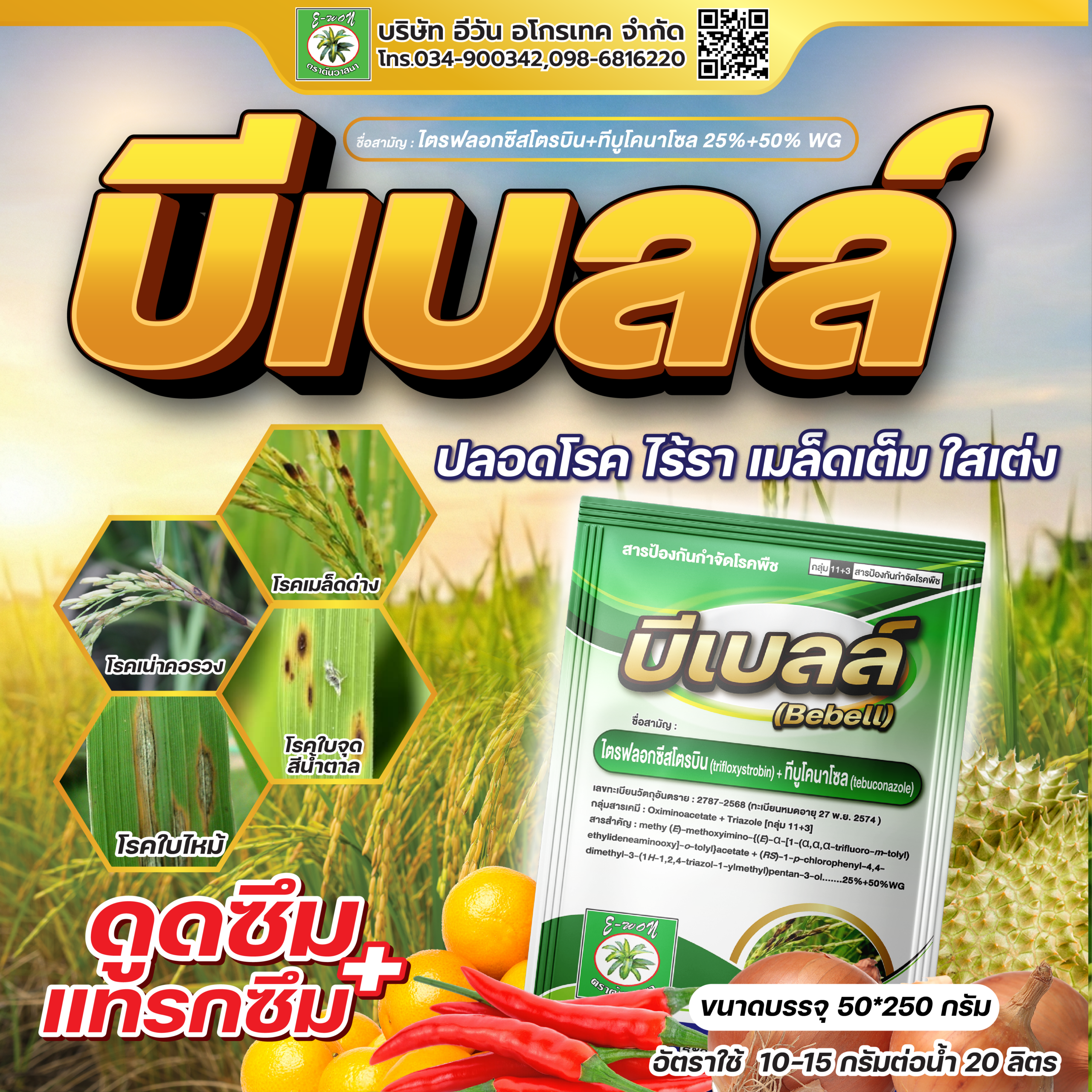 ชื่อสามัญ : ไตรฟลอกซีสโตรบิน+ทีบูนโคนาโซล 25%+50% WG
